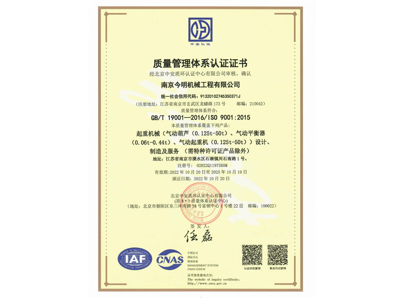 南京今明機械工程有限公司成立于一九九三年,歷經(jīng)二十多年磨練,沉淀了一批跟隨企業(yè)共同成長,技藝超凡、資深的高級工程師、技師、以及熟練的技術(shù)工人。企業(yè)的歷練和人才的智慧,鑄造出企業(yè)的核心競爭力。十年磨一劍。本著技術(shù)興業(yè),多年來,企業(yè)致力于氣動起重產(chǎn)品的研發(fā)與生產(chǎn)。在國內(nèi)氣動起重裝備領(lǐng)域具有良好的聲譽。并積極地與國家起重運輸機械質(zhì)量監(jiān)督檢驗中心、北京起重運輸機械設(shè)計研究院、江蘇省科技廳、南航等高校和科研單位緊密合作,與國外知名企業(yè)建立戰(zhàn)略合作伙伴關(guān)系,廣泛吸收國內(nèi)外新技術(shù)經(jīng)驗,力求趕超國際先進氣動起重裝備的技術(shù),打造國內(nèi)氣動起重裝備行業(yè)新軍。目前,企業(yè)已開發(fā)五大系列近百個品種的產(chǎn)品,覆蓋了化工、汽車、機械、冶金、礦山等二十多個行業(yè),并在全國三十多個省份擁有客戶。企業(yè)堅持用心做好每個環(huán)節(jié),精心打造讓客戶滿意的產(chǎn)品,力求...